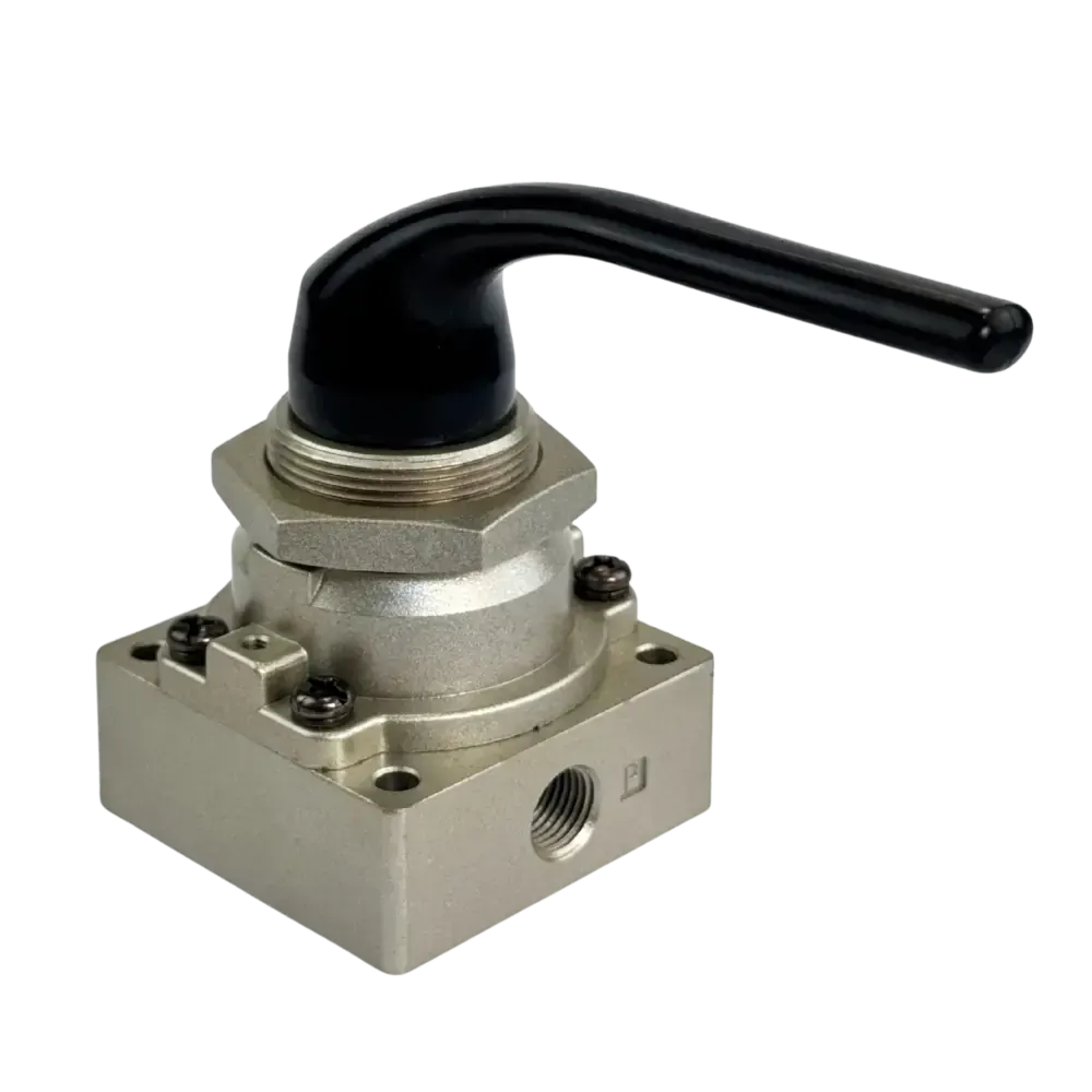 The ROT43 series of 4 way 3 position lever valves allows you to effectively actuate cylinders including holding it in one position. It has centre closed ports which gives the capability of holding an air ram or actuator where it is and 'inching it' one way or the other. Has a common exhaust port. Simple lever operation.