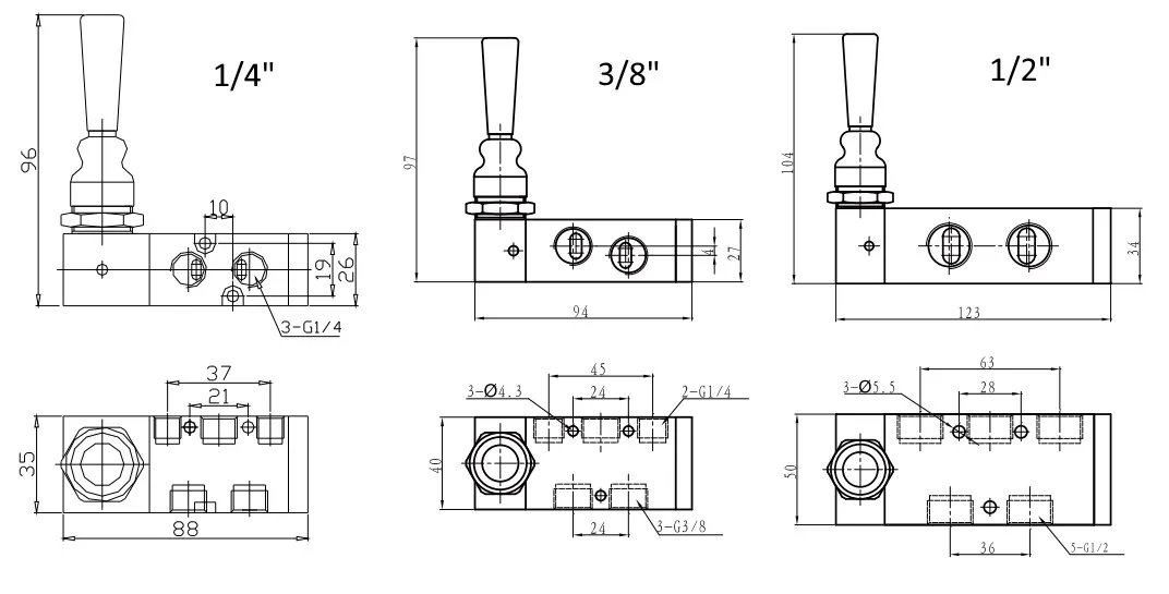 Exhaust Port Size 1/8” 1/4" 1/2"