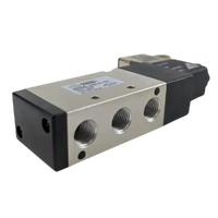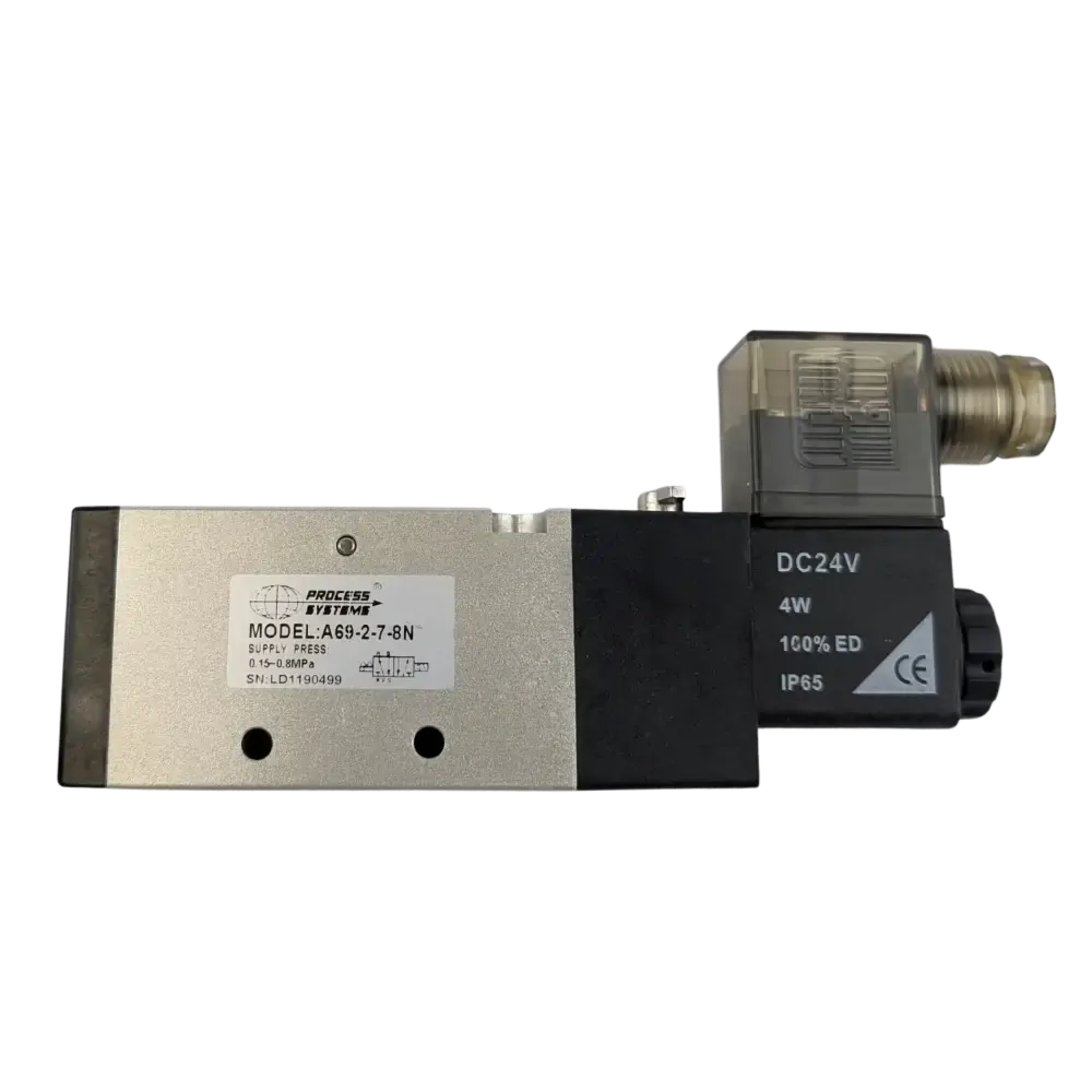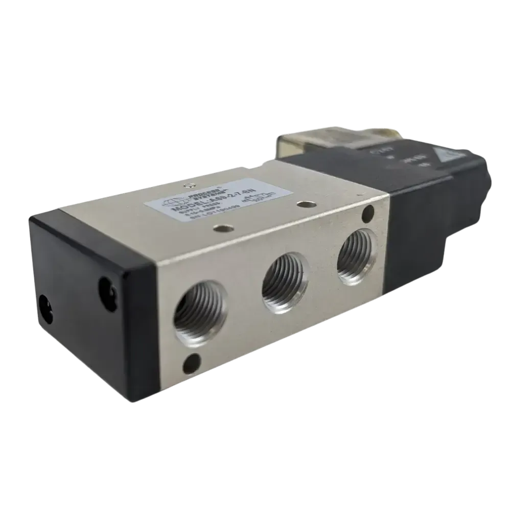 5 way 2 position solenoid valve (solenoid one end and spring on the other) suitable for use in controlling air actuators or cylinders. Standard features include manual override, led indicator plug (IP65), fully encapsulated low wattage coil. This unit can also be mounted on a manifold of up to 12 units. Threads conform to ISO 7.1 Sealing Threads.