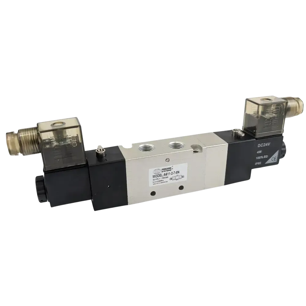 Great for controlling cylinders and pneumatic actuators.The three position function allows the user to 'inch' or creep the actuator or cylinder. IP65 weatherproof coil an LED DIN plug. Threads conform to ISO 7.1 Sealing Threads.