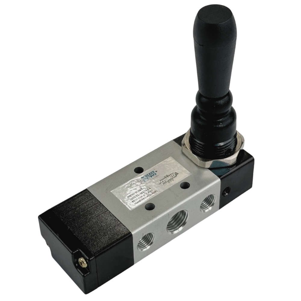 The LEL53 series are a five way three position joystick control valve. The sprung center position has closed ports so no air can be put in or exhausted from the valve (will hold your cylinder in its last position). Ideal for controlling cylinders (allows you to 'creep' your cylinder forward or back and then hold it in one spot) or pneumatic actuators simply push the lever one way or the other. Simple to use, install and maintain.