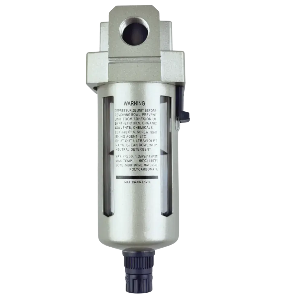 Simple and effective way to filter your air, removing water, oil and other suspended debris. Offers energy savings, high flow rates and ease of use. Easy to install and maintain. All units come with mounting bracket, auto drain and polycarbonate bowl guard with sight glass. *Please note that you need a 2 Bar differential (30psi) to seat the drain to the filter upon start up so if you are running a very low pressure system please ensure you have this.