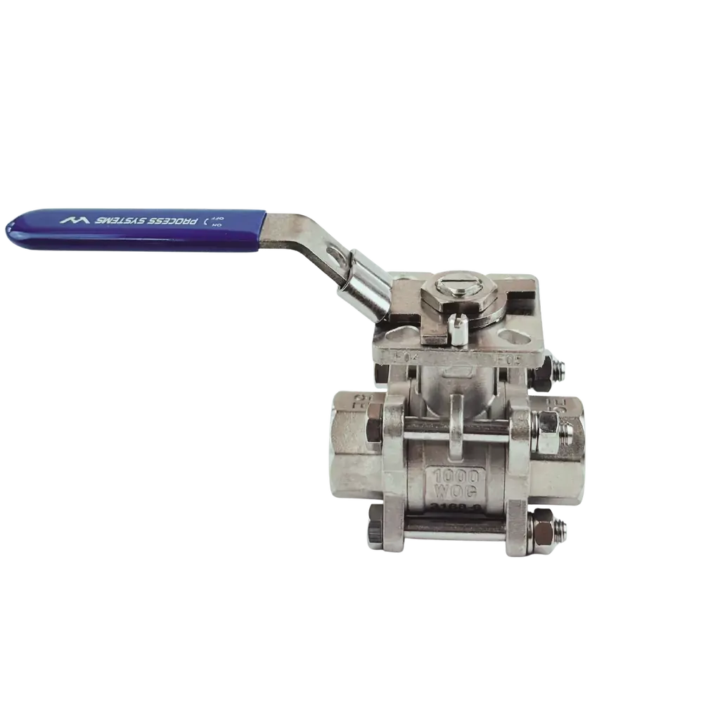 2 way 3 piece Stainless Steel Ball Valve Construction