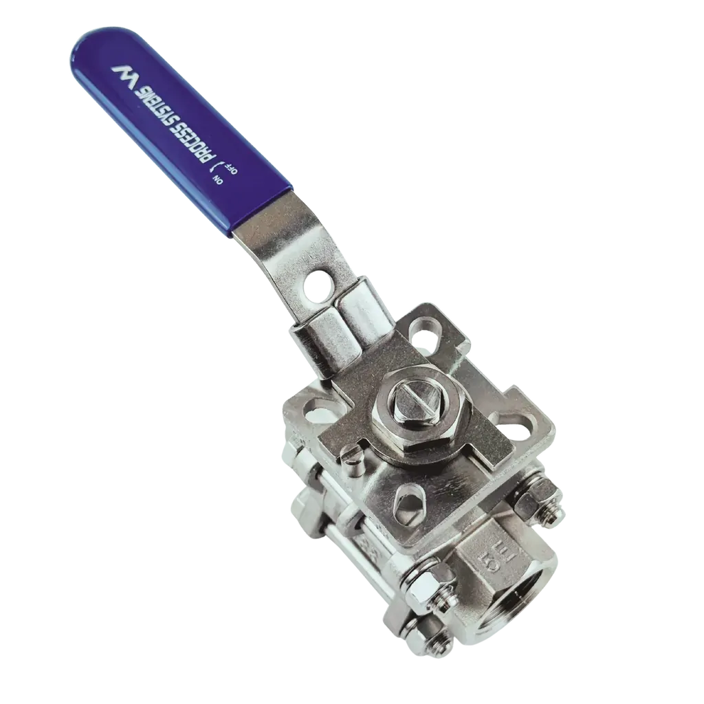 High performance 3 piece full bore 316 Stainless Steel ball valve with BSP threaded connections. Self adjusting stem packing assembly with belleville spring for temperature fluctuations and vibration. Pre drilled metric hole on ISO5211 direct mounting pad to minimise any thermal transfer from valve to actuator. Reinforced PTFE seats for temperatures up to 180°C. This ball valve has a lockable lever operation so it can be locked in one position if needed. Typical applications include water treatment, chemical, marine, petrochemical and general industry. Length to DIN3202-M3, Threads to ISO7/1 and mounting pad to ISO5211. Watermark valves available upon request, contact Sales for more information. Watermark License Number WMK26529 approved to WMTS 012:2018.