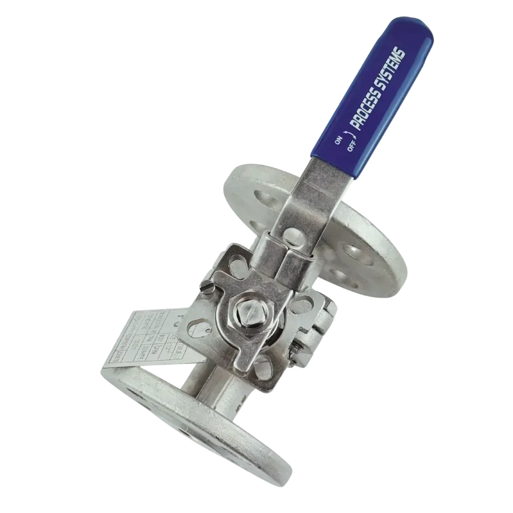 Two piece two way ANSI 150 lb flanged fire safe approved ball valve, lockable lever operation. 316 Stainless Steel body, PTFE seats, FKM backing ring, live loaded packing and anti static device. Firesafe Approved API607 Sixth Edition, Cert. No 230679. ISO5211 Mounting Pad allowing direct coupling of actuation. Great for fuel applications, pipelines, water treatment and general industry. If you are using these on steam or other high temperature applications (above 120°C) and do not need the fire safe certification, we recommend going with a 50/50 stainless steel/ptfe seat to extend your valve life.